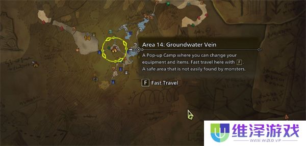 位置隐蔽,可通过区域 13 的绿洲营地附近的洞穴进入,或者直接从区域 14 / 15进入。