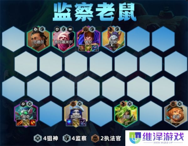 监察老鼠是金铲铲之战中一套以图奇为主C,搭配监察前排+狙击后排的阵容。其核心打法是利用羊刀叠攻速,搭配狙神转职,轻松秒杀敌方后排。该阵容在JOC7比赛中经常出现,成型后强度极高,适合追求稳健上分的玩家。接下来小编将与各位介绍金铲铲之战监察老鼠阵容的构筑玩法,希望对你有帮助。
