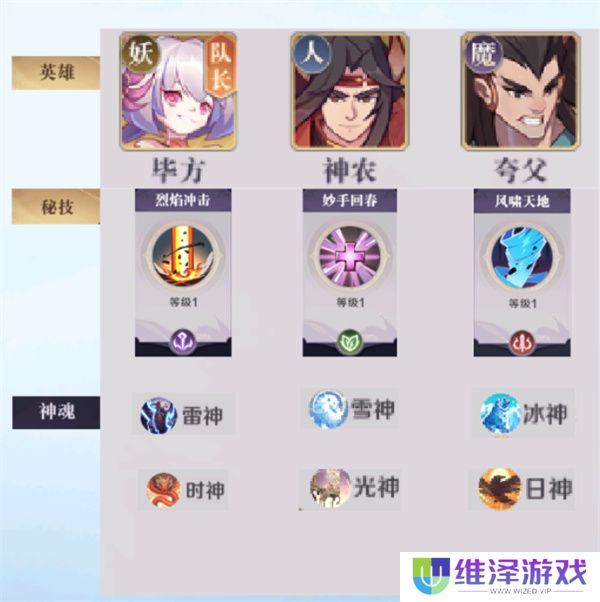 1、阵容搭配: 毕方(队长)+ 神农 + 夸父