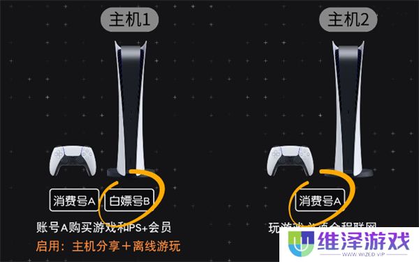 2、主机1的账号B需要先通过账号A激活主机共享,否则无法游玩账号A的游戏