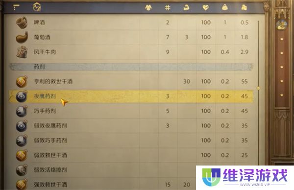 夜鹰药剂:提高夜间视野,避免因视线受限而误操作。