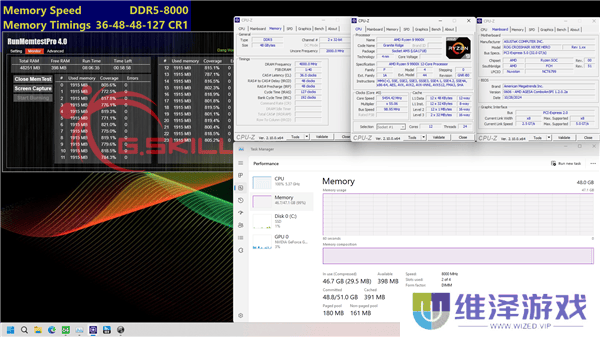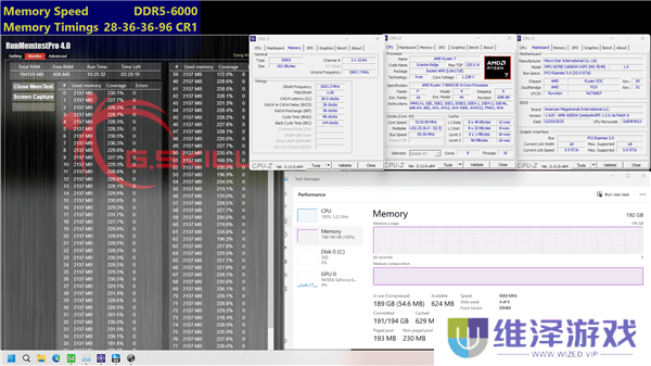 为了验证这些内存套装的性能,芝奇还在X870平台上进行了严格的测试。其中,DDR5-6000 192GB套装在锐龙7 9800X3D处理器和微星MPG X870E CARBON WIFI主板的搭配下,展现出了出色的性能表现。而DDR5-8000 48GB套装则在锐龙9 9900X处理器和华硕ROG CROSSHAIR X870E HERO主板的搭配下,同样展现出了令人瞩目的性能。