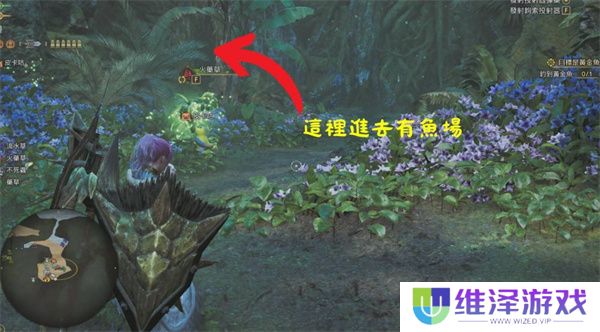 第一个鱼场:沿着路径前进,看到鱼就直接捕捉。