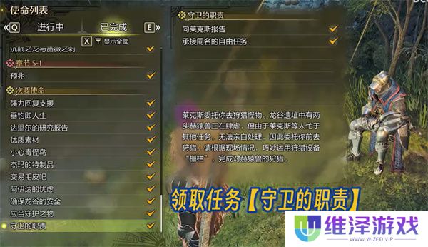 2、领取名为【守卫的职责】的任务。
