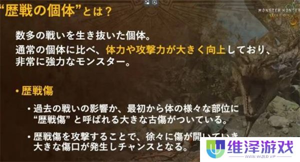 历战怪物比普通怪物拥有更高的生命值和攻击力,并带有特殊的历战伤痕。