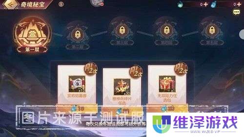 小将军可以通过购买商铺礼包,或累计奇境探宝达到指定目标,获得「奇境宝玉」,可在奇境秘宝中兑换超值奖励。