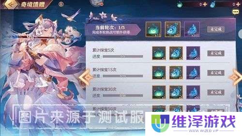 当小将军们累计探宝次数达到指定目标,即可解锁奇境馈赠奖励,获得稀有活动代币「奇境宝玉」、「奇境灵气」与将魂精华。奇境馈赠目标一共分为5轮,完成每轮所有探宝目标,还可以额外获得一份丰富馈赠。