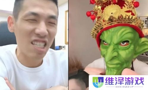 旭旭宝宝连麦旗下女主播,现场戴小怪头套太辣眼,看到长相不淡定了